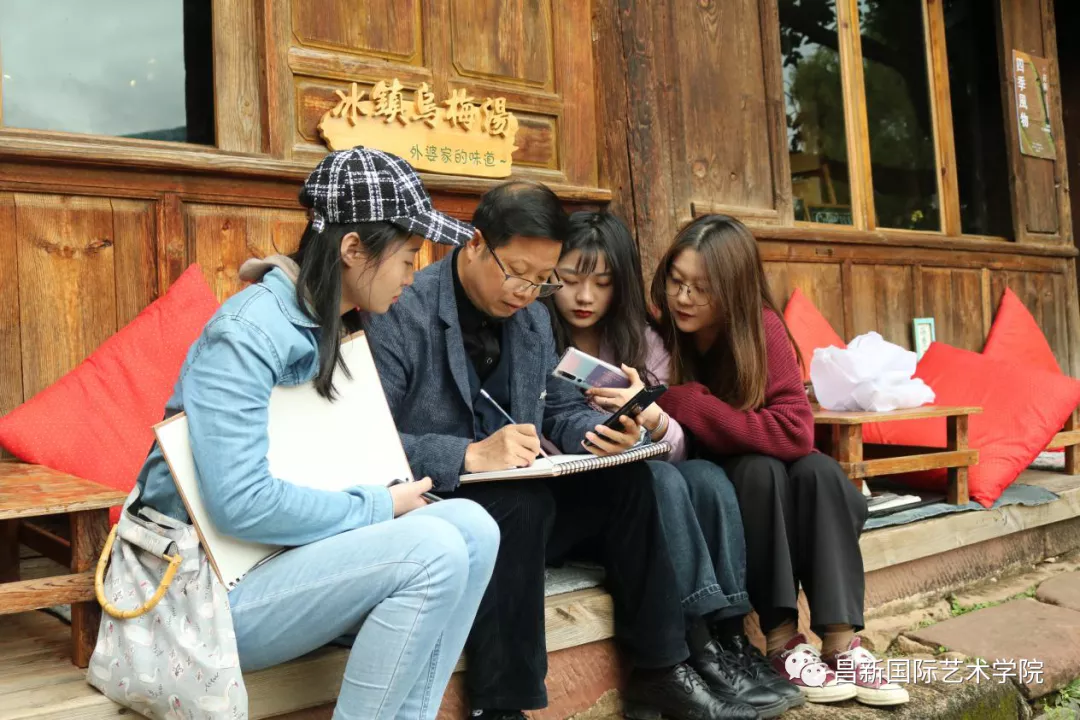 汪明老师在沙溪古镇为2020级瓷画研究生示范写生